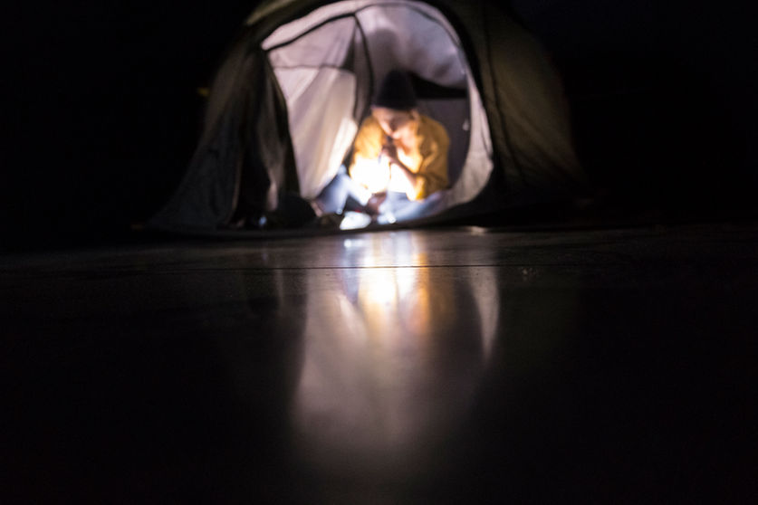 - Dans ma tente argentée, je me réveille au lever du soleil.
